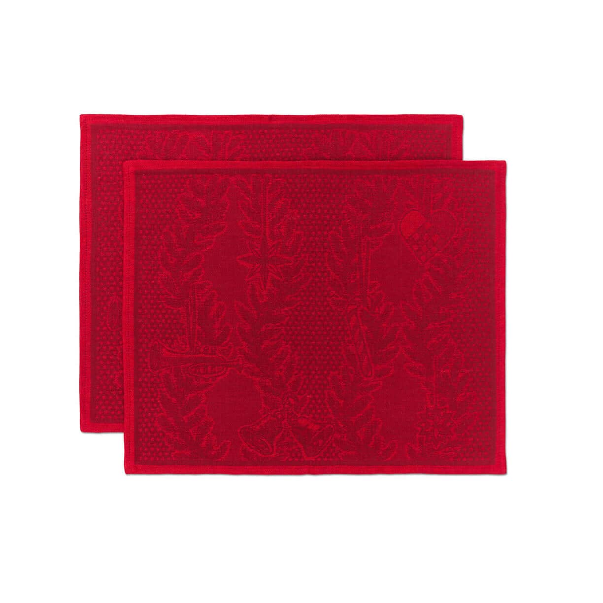 Elegante dækkeservietter fra Royal Copenhagen med inspiration fra Stjerne Riflet Jul. Pakken indeholder to styk og de er begge dekoreret med julestjerner, hjerter og bånd.